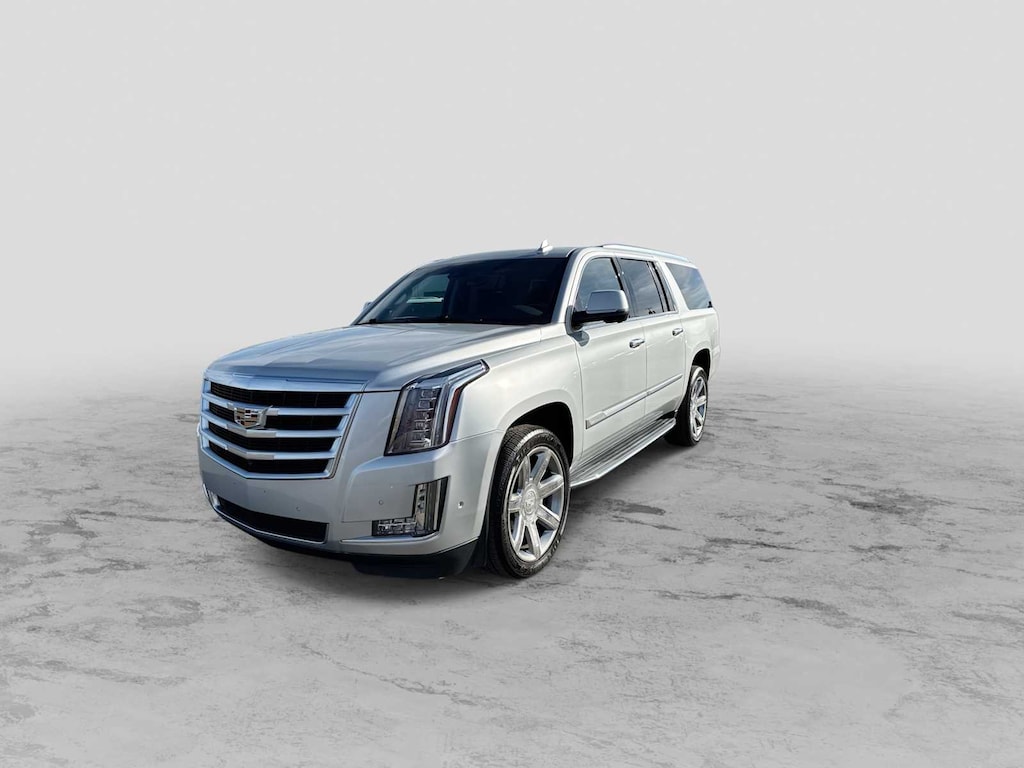 ENTERTAINMENT SYSTEM, REAR SEAT includes two 9 screen DVD player (Blu-Ray capable) with remote control, four 2-channel wireless digital headphones, auxiliary audio/video jacks on rear of center console, sound compression, CD-R and CR-R/W capability, LED backlighting display, MP3 capable, HDMI/HML input, 2nd USB port with 2.1 amp charging and Wi-Fi capability via Digital Living Network Alliance (DLNA), LPO, INTERIOR PROTECTION PACKAGE includes (VAV) all-weather floor mats, LPO and (VLI) all-weather cargo mat, LPO, CADILLAC USER EXPERIENCE WITH EMBEDDED NAVIGATION AM/FM stereo with 8 diagonal color information display featuring touch response, haptic feedback, gesture recognition, Natural Voice Recognition, Phone Integration for Apple CarPlay® and Android Auto® capability for compatible phone, Connected Apps and Teen Driver. Five USB ports, including one in the articulating storage door/bin and auxiliary audio port (STD), ENGINE, 6.2L V8 WITH ACTIVE FUEL MANAGEMENT Spark Ignition Direct Injection (SIDI) and Variable Valve Timing (VVT), includes aluminum block construction (420 hp [313.2 kW] @ 5600 rpm, 460 lb-ft of torque [621 N-m] @ 4100 rpm) (STD), TRANSMISSION, 10-SPEED AUTOMATIC electronically controlled with overdrive, tow/haul mode and tap up/tap down shifting (STD). Cadillac Luxury with Radiant Silver Metallic exterior and Jet Black interior features a 8 Cylinder Engine with 420 HP at 5600 RPM*.