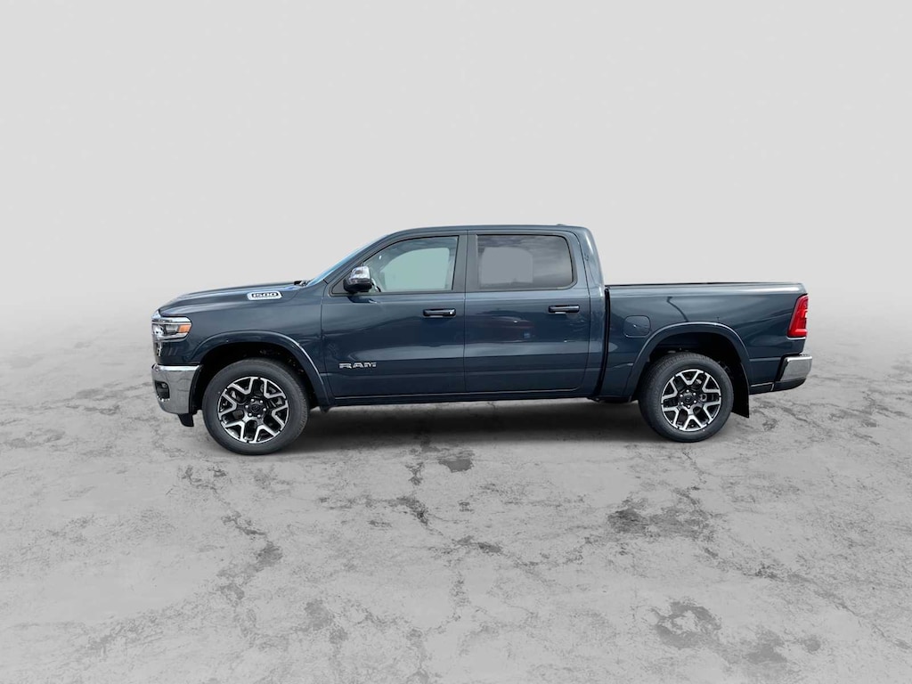 LARAMIE LEVEL 1 EQUIPMENT GROUP Remote Tailgate Release, Rain Sensitive Windshield Wipers, MOPAR FRONT & REAR RUBBER FLOOR MATS, TRANSMISSION: 8-SPEED AUTOMATIC (8HP75) (STD), ENGINE: 3.0L I6 HURRICANE SO TWIN TURBO ESS (STD). Ram Laramie with Forged Blue Metallic exterior and Black interior features a Straight 6 Cylinder Engine with 420 HP at 5200 RPM*. Approx. Original Base Sticker Price: $69,300*.